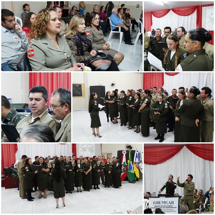 Foi realizado neste final de semana o XIX Aniversário do Grupo de Militares de Araranguá, um dos mais antigos Grupos da UMESC. O GRUMEAR, nestes 19 anos de atividades, 818 cultos de louvor e adoração, 1.318 pessoas aceitaram a Jesus e mais de 1.800 batizado com o Espírito Santo. Mãos que pegam em almas também sabem ganhar almas."Quem quer faz, e participa, quem não quer arruma desculpas"