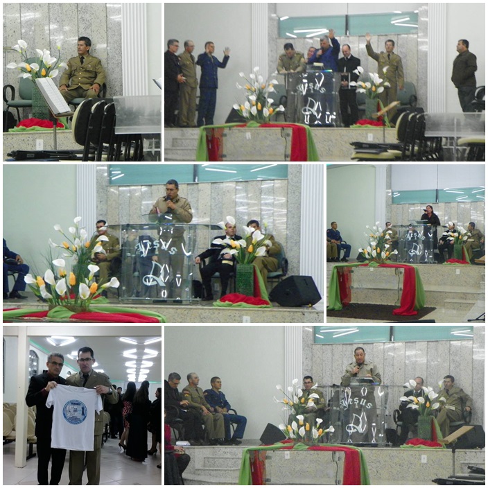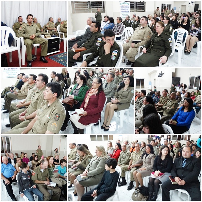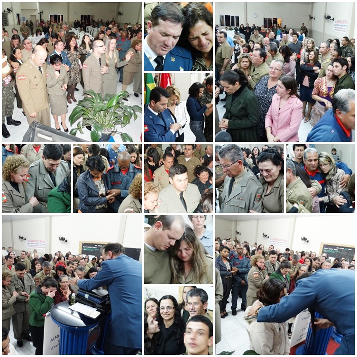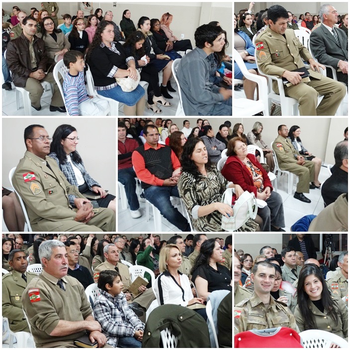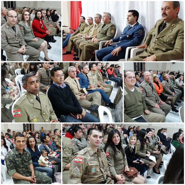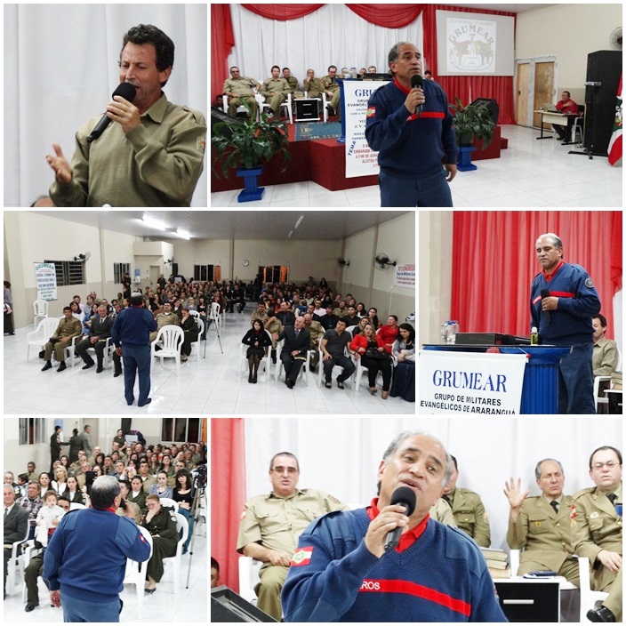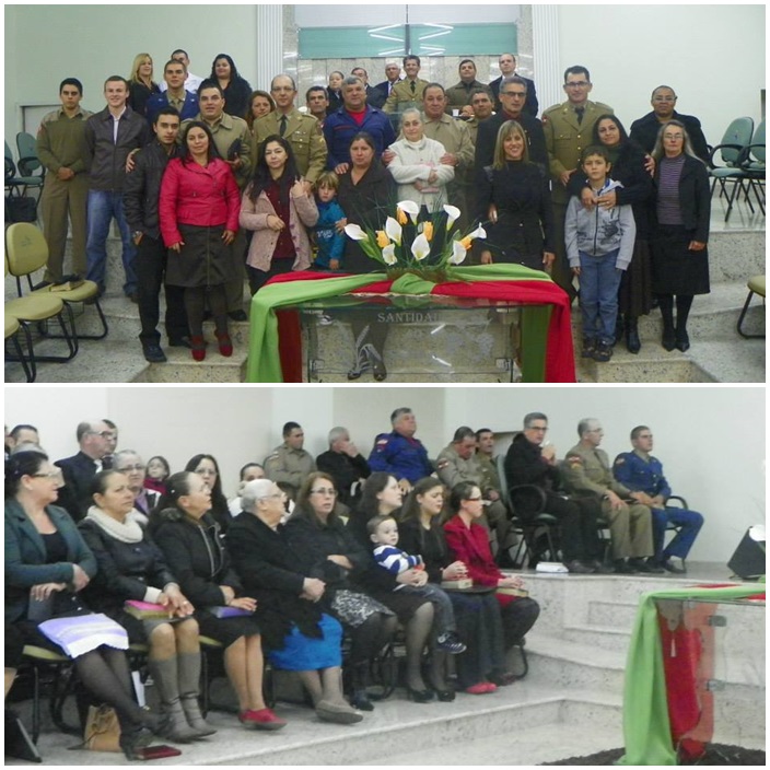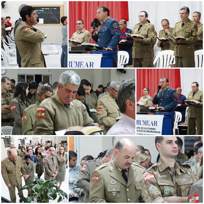 Tivemos a participação de dezenas de militares de várias regiões do Estado. Na direção o Cb PM Pr Tadeu e sua maravilhosa equipe, ministrou a palavra o Cb BM Ev Cláudio Luz Secretario da UMESC, participação do vice presidente Sgt PM Ev Rotta, Secretario Executivo Sgt PM Pb Antunes bem como Coordenador Regional de Lages Sgt Pb Augusto, de Criciúma ST BM Pb Virtuoso e demais membros do Grupos, Cb PM Pb Everaldo e Grupo, Sd Ev João Leal, ST Pb Teodoro de Biguaçú e dezenas de militares da PM, BM, EB. Foram momentos maravilhosos e de grande manifestação do poder de Deus. Pessoas foram edificadas e tivemos mais uma alma para o Senhor Jesus.