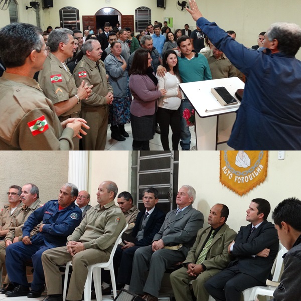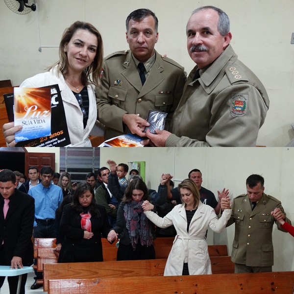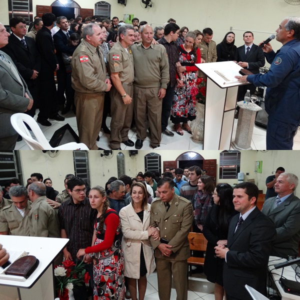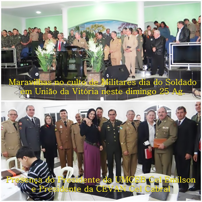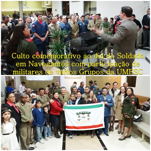 No dia de hoje, nós Militares Evangelicos participamos de um maravilhoso culto na Igreja do Evangelho Quadrangular do bairro São Marcos, aonde sentimos a presença de Deus nos louvores, na pregação da Palavra de Deus ministrada pelo Pastor Major Geovane Fachini... Estavamos num numero pequeno de Militares devido ao trabalho na cidade de Barra Velha, aonde os Militares de Joinville foram representar o grupo do Grumeville, mas Deus se fez presente e podemos ver e sentir o agir do Espirito Santo... A pedido do Presbitero Sd Charles Adriano que dirigiu o culto, esplanamos as atividades da Umesc e Grumeville e o Pastor da igreja sensibilizado com o trabalho missionário da Umesc, levantou uma oferta que fora arrecado o valor de R$ 313,00 reais que será revertido a conta da Umesc para campanha missionária.