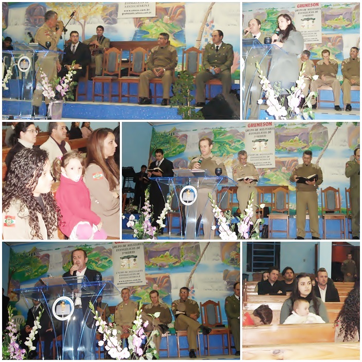 Estiveram cooperando de Joinville o Cabo Bento com sua esposa e filhas, as irmãs Fernanda e Rafaela, que louvaram ao Senhor, também se fez presente o Coordenador do Grumeville, cabo dos Santos, o qual ministrou a Palavra de Deus e louvou juntamente com sua esposa. Registramos também a presença do Sd BM Odemir, da cidade Matinhos/PR, o qual compareceu juntamente com sua esposa e filha para cooperar neste Culto.