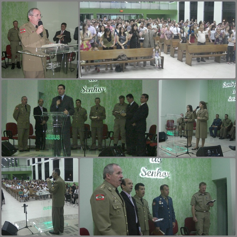Com a organização do PM Luiz Antônio Podskarbi, 1º Coordenador do GRUMEJS, foi realizado um grandioso culto de militares, no dia de 18 de Abril, na I.E.A.D (sede) de Jaraguá do Sul, onde vários militares e família se fizeram presentes, dentre eles, membros da diretoria UMCEB/UMESC, presidente, Cel PM Pr Emilson Carlos de Souza, vice-presidente, Sgt PM Pb Arlindo Rotta e, o Pr da I.E.A.D (sede) Elias, que gentilmente cedeu o local. Na preleção do Sub Ten Pb Levi Domingos, coordenador da regional norte de SC várias almas aceitaram a Jesus.