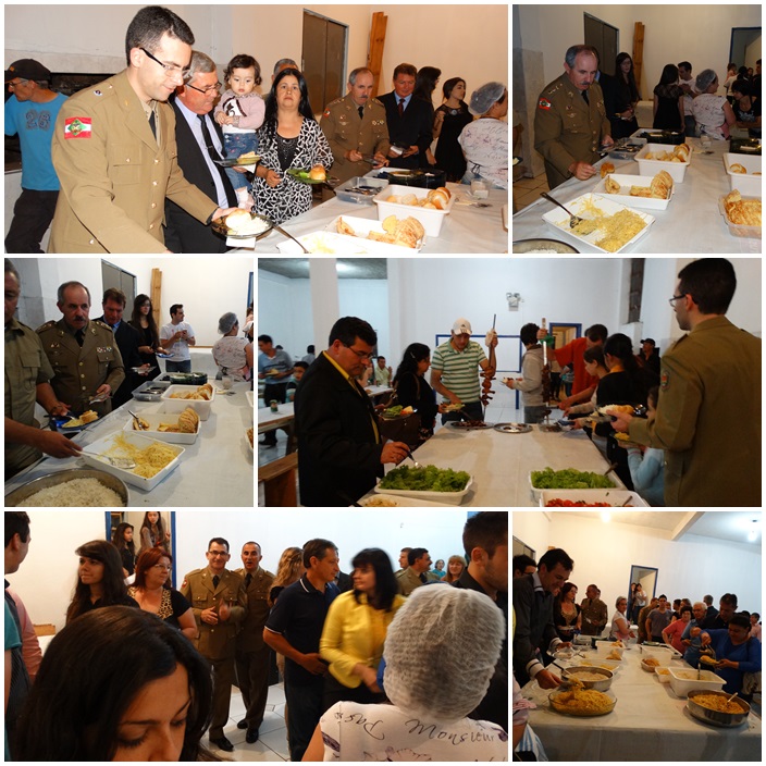 Após a reunião, o Grupo do Apoio feminino, cantaram ao Senhor com hinos abençoados e efetuaram o convite para o lançamento do 1º CD da Irmã Fernanda, esposa do Cb Montoski, na sequência foi servido um suculento churrasco com todos os presentes, assim concretizando mais um Grupo de Militares da UMESC. Também contamos com honrosa presença do Cap Charles, Cmt da 3ª Cia, onde participou conosco do saboroso churrasco, e em seguida foi efetuada a entrega da Bíblia, com dedicatória, e informativos da UMESC e UMCEB.