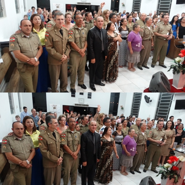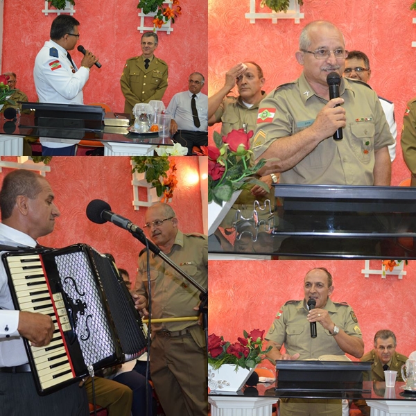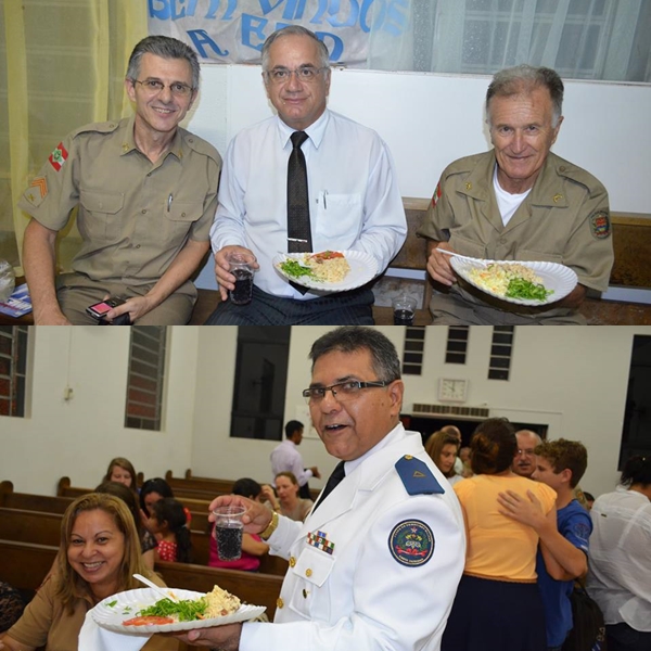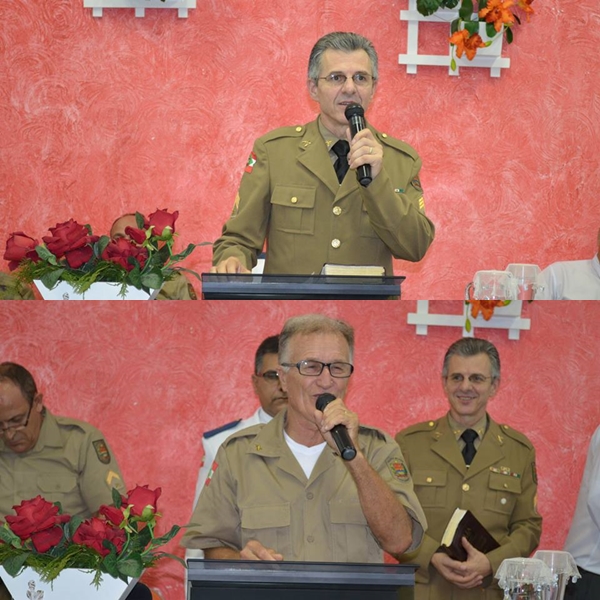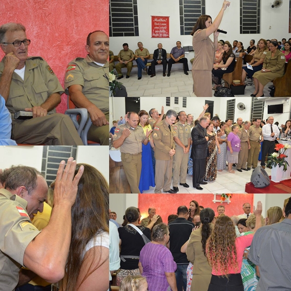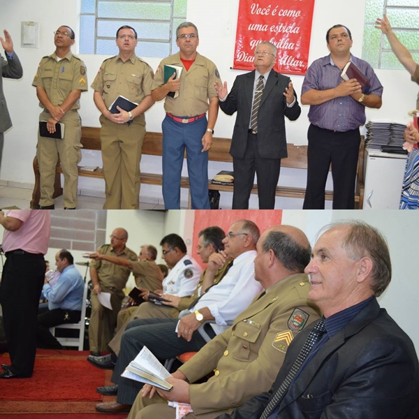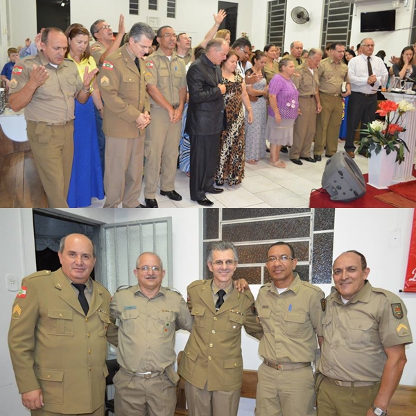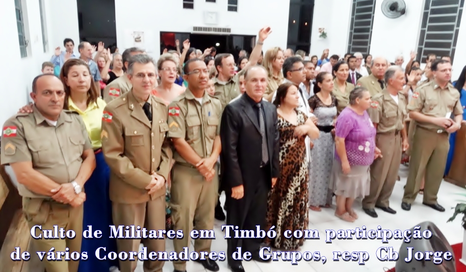 Culto de Militares em Timbó com participação de vários Coordenadores de Grupos, direção ST Vicente , Coordenador Regional e Cb Jorge, Coordenador do Grupo. Se fez presente o Sgt Rotta, Vice Presidente da UMESC, Cd Padilha Coordenador de Balneário Camboriú, Cb Vieira, Coordenador de Brusque, Sgt Vaz, Coordenador de Itajaí, Sgt Moacir e Sgt Marcelo, Coordenadores de Blumenau e Irmã Gabriela esposa do Coordenador de Navegantes. Deus se manifestou de uma maneira tremenda através da palavra ministrada pelo Cb Vieira de Brusque. No final foi realizado pelo irmão João gaiteiro. Após todas bênçãos recebidas foi nos servido um suculento jantar a todos presentes.