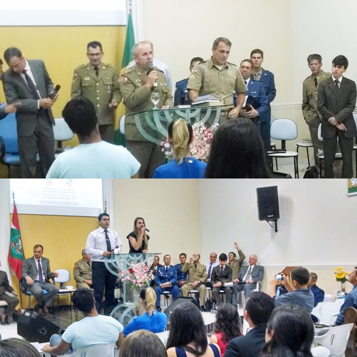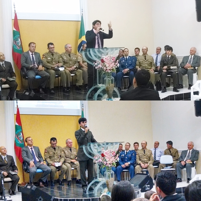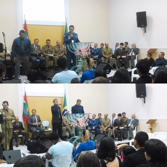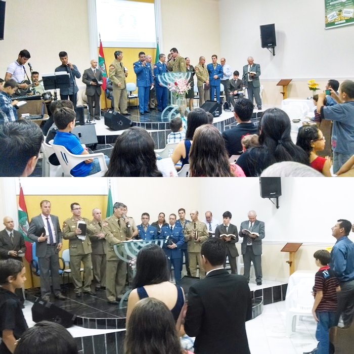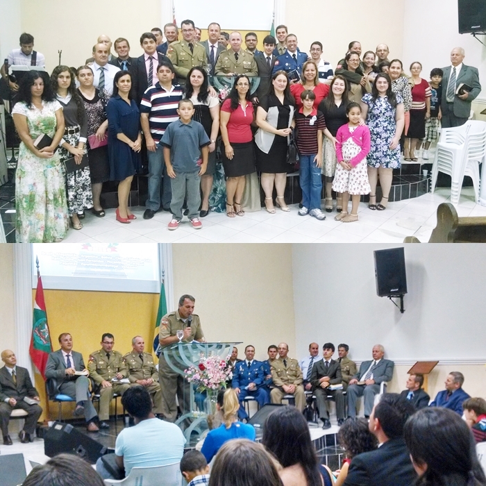 Culto comemorativo aos 25 anos da UMESC, na AD da Lagoinha do Leste, em Florianópolis, dirigido pelo GRUMEFLOR-Norte, preletor Sgt Ademar;