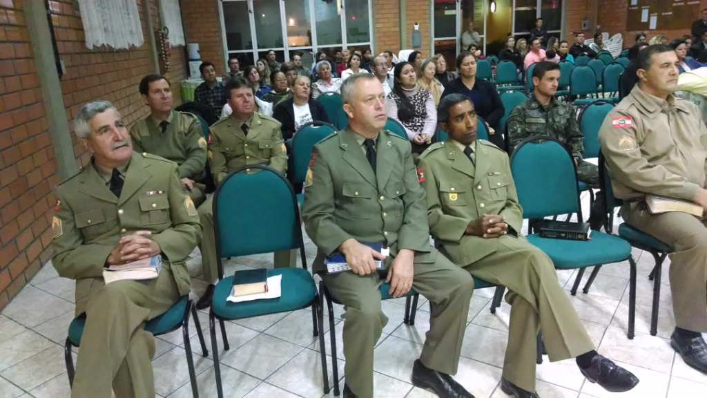 Culto realizado dia 15/05 na Igreja CEI (Pr Sub Ten Mauro) em Lages, para demais providencias. Preletor foi o Cb PM Pb Misael - Coordenador do Grupo.