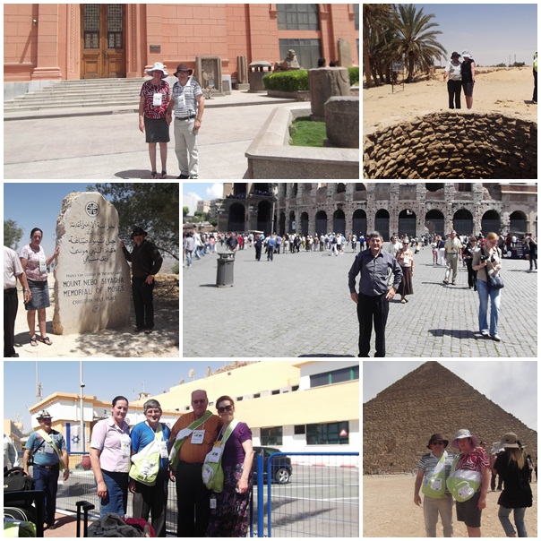 Viagem a Roma, Egito, Jordania e Israel do coliseu em Roma, Museu do Cairo< Egito, atravessando a fronteira de Israel, lugar da caveira, dentro do tumulo, Poço de Mara no deserto, piramides no Egito, muro das lamentações, e Monte NEBO, de onde Moises viu a terra prometida.