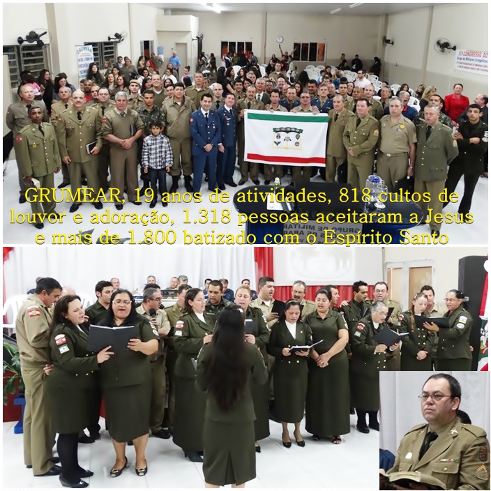 Foi realizado neste final de semana o XIX Aniversário do Grupo de Militares de Araranguá, um dos mais antigos Grupos da UMESC. O GRUMEAR, nestes 19 anos de atividades, 818 cultos de louvor e adoração, 1.318 pessoas aceitaram a Jesus e mais de 1.800 batizado com o Espírito Santo. Mãos que pegam em almas também sabem ganhar almas."Quem quer faz, e participa, quem não quer arruma desculpas"