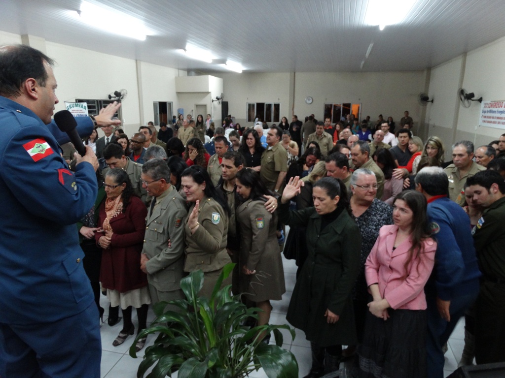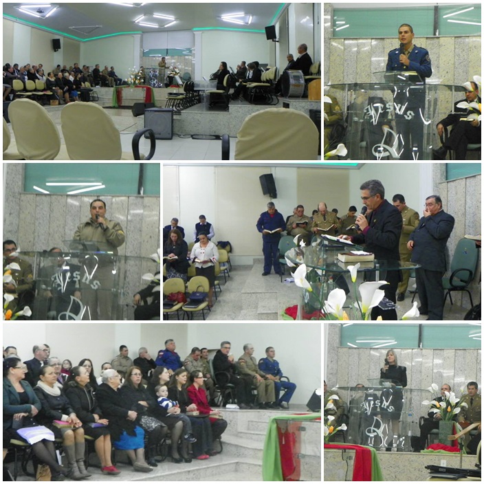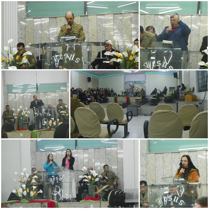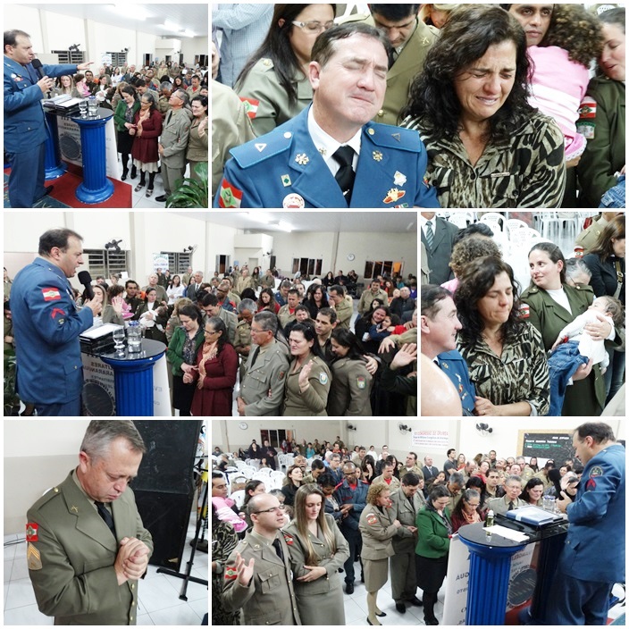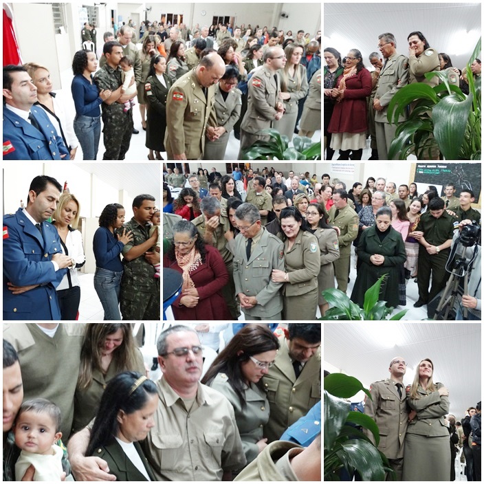 Tivemos a participação de dezenas de militares de várias regiões do Estado. Na direção o Cb PM Pr Tadeu e sua maravilhosa equipe, ministrou a palavra o Cb BM Ev Cláudio Luz Secretario da UMESC, participação do vice presidente Sgt PM Ev Rotta, Secretario Executivo Sgt PM Pb Antunes bem como Coordenador Regional de Lages Sgt Pb Augusto, de Criciúma ST BM Pb Virtuoso e demais membros do Grupos, Cb PM Pb Everaldo e Grupo, Sd Ev João Leal, ST Pb Teodoro de Biguaçú e dezenas de militares da PM, BM, EB. Foram momentos maravilhosos e de grande manifestação do poder de Deus. Pessoas foram edificadas e tivemos mais uma alma para o Senhor Jesus.