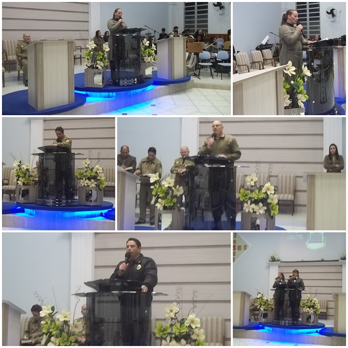 Estiveram cooperando de Joinville o Cabo Bento com sua esposa e filhas, as irmãs Fernanda e Rafaela, que louvaram ao Senhor, também se fez presente o Coordenador do Grumeville, cabo dos Santos, o qual ministrou a Palavra de Deus e louvou juntamente com sua esposa. Registramos também a presença do Sd BM Odemir, da cidade Matinhos/PR, o qual compareceu juntamente com sua esposa e filha para cooperar neste Culto.