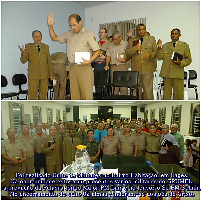Na oportunidade estiveram presentes vários militares do GRUMEL, a pregação da Palavra foi do Major PM Lair e no louvor o Sd BM Selmir. No encerramento do culto 02 almas renderam-se aos pés de Cristo. Sd Misael - Coordenador do GRUMEL.