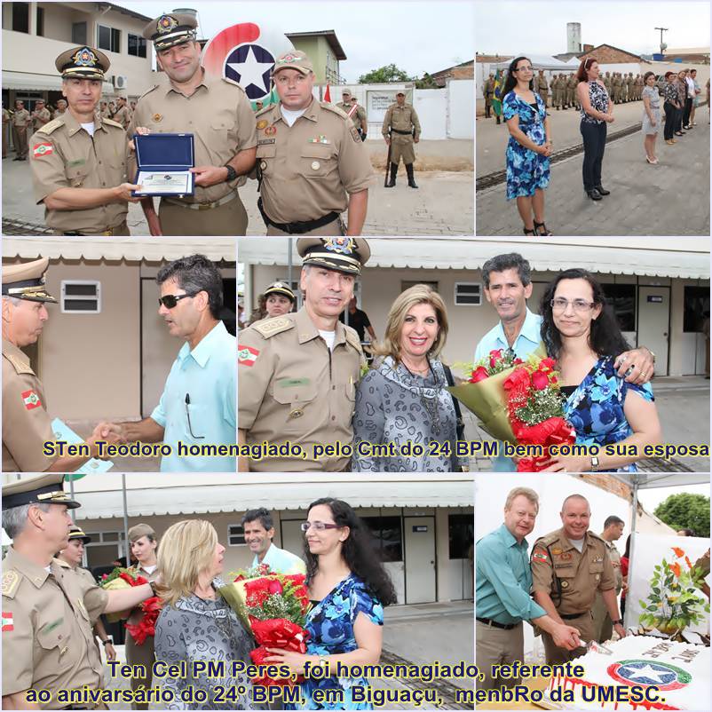 A paz do Senhor! estou enviando para conhecimento algumas fotos em que o Ten Cel PM Heriberto Rocha Peres, também foi homenagiado, referente ao anivarsário do 24º BPM, em Biguaçu, poi o mesmo também é menbRo da UMESC. Segue em anexo. Um forte abraço