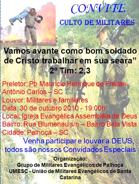 A Congregação é dirigida pelo Sd PMSC PB Carlos Leite Filho, e o 1º Coordenador Sd BM Eloir tem abençoado esta obra, assim como Sd PM Egídio Back e muitos outros irmãos.
