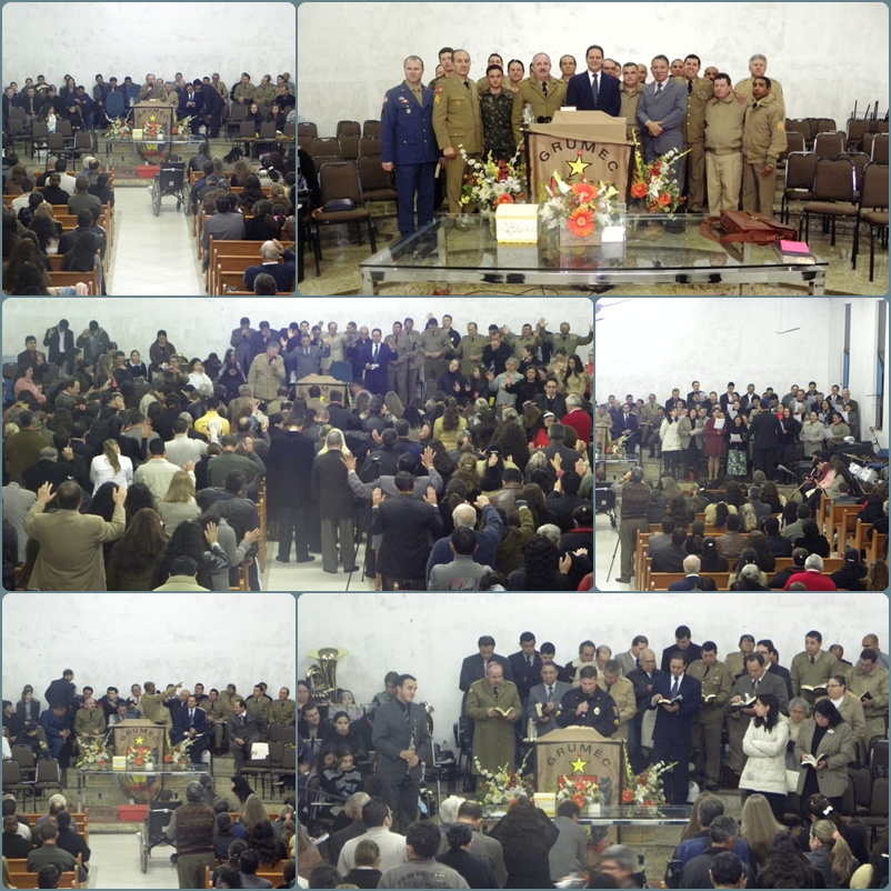 No mesmo Fim de Semana, em Porto União, Culto de Militar, sob a coordenação Sgt PM Olídio Gemelli, 1º Coordenador do GRUMEPU – grupo de Porto União -. Ministrando a Palavra, Pregador PMPR Cel Cabral, presidente da união dos militares evangélicos do PR.