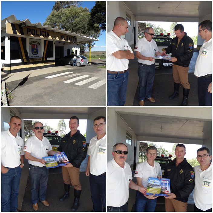 O próximo destino foi a cidade de Palmas-PR, tendo como saída às 13:30hs, sendo visitado o posto da PRE, realizada a entrega de revistas aos colegas paranaenses, seguimos então a São Lourenço do Oeste, visitando o Coordenador SgT Viana, que serviu um café, e posteriormente houve a participação no culto de ação de graças na Igreja do Evangelho Quadrangular, pastoreada pelo Pr Isoton, estando na direção o St Pr Davi, 2º Coordenador do grupo da região. Neste culto se fizeram presente caravanas de militares de Barracão, Chapecó acompanhados do Sgt Bottega, Coordenador regional, e o Cpl Tenente Alex Thomaz de Almeida, preletor. No final do culto, foi servido um jantar a todos presentes no evento.