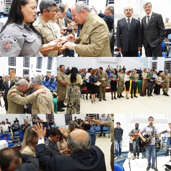 Se fizeram presentes dezenas de militares de várias cidades de nosso Estado Catarinense, que durante o culto foi realizado o lançamento do CD da Irmã Fernanda (que é também Bombeiro Voluntária de Rio das Antas) esposa do Cb Montoski.