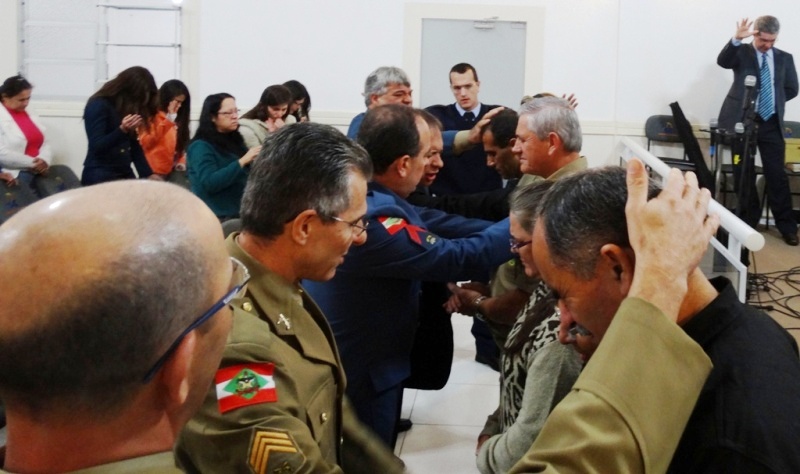 A UMESC deu posse ao 50º Grupo de Militares Evangélicos no Estado de Santa Catarina, este na Cidade de Paulo Lopes-SC, assumindo a direção o Sgt PM Souza e o Cb PM Borba. Na oportunidade a palavra ficou a cargo do Sgt BM Mario Cesar de Florianópolis. Tivemos a presença de vários outros militares, Agente Prisional, Guarda Municipal e Agente Temporário da região de Imbituba, Paulo Lopes, São José, Florianópolis, Camboriú e Tubarão-SC. Abrilhantando também a Banda de Musica, adorando aos Senhor com lindo louvores.