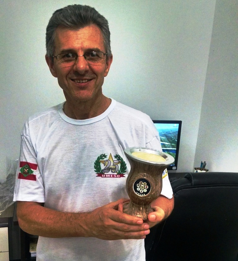 Na oportunidade nos foi informado que o seu pai Walter Samuel Straesser doou 20 cuias personalizada da UMESC como ajuda aos militares atingidos pelas calamidades.